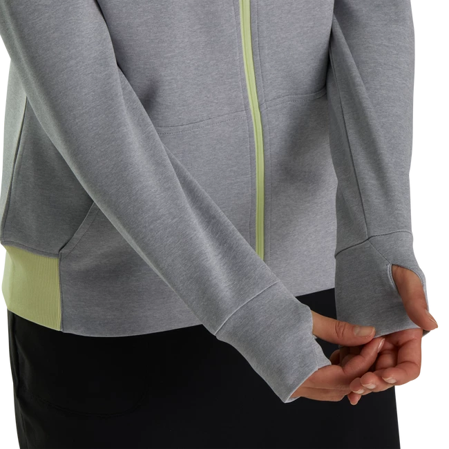 Women’s mid-layers are versatile pieces that allow the player to adapt to changing weather conditions. The four-way stretch fabric helps keep your core warm while allowing free range of motion throughout the golf swing.