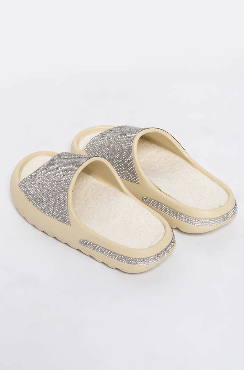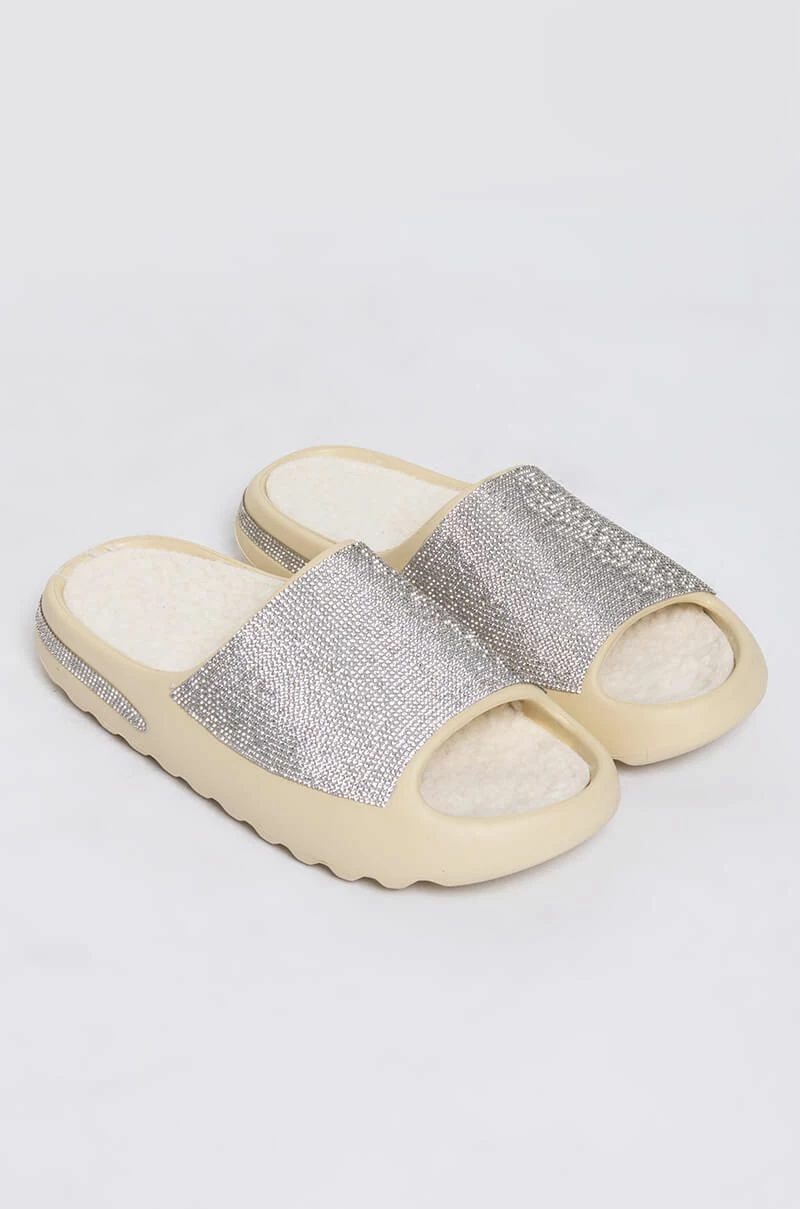 The AKIRA Label Let It Go Flat Sandal in Bone is a simple yet glam slide that goes with everything. Features a flat sole, rhinestone embellishments at the strap and sides, and a slide-on fit. Wear with cuffed denim and your favorite toe rings to be the relaxed, stylish type.