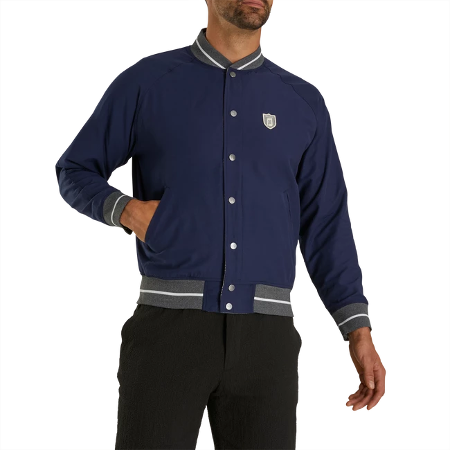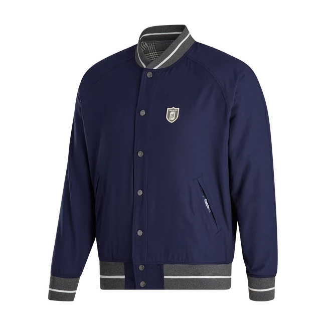 Originally designed to keep WWI pilots warm, the bomber jacket became a style icon thanks to the likes of Hollywood leading men like Marlon Brando and Steve McQueen. Our take fuses a classic silhouette (reminiscent of a vintage Letterman jacket) with a sartorial fabric and features the FootJoy logo on the chest. It’s also fully reversible: a solid navy satin on one side and a moisture-wicking wrinkle-resistant plaid on the other. An essential and versatile third layer to top off your look on the green — especially paired with the matching Sutton Pants — or add a casual street note to tailored separates.