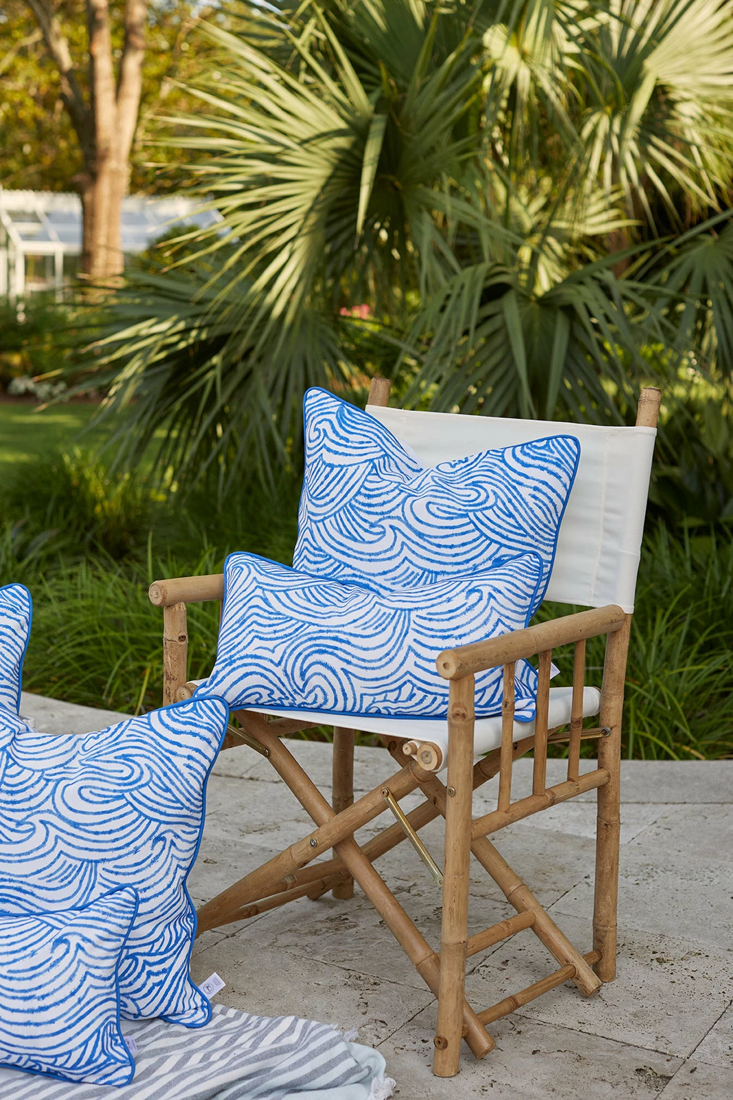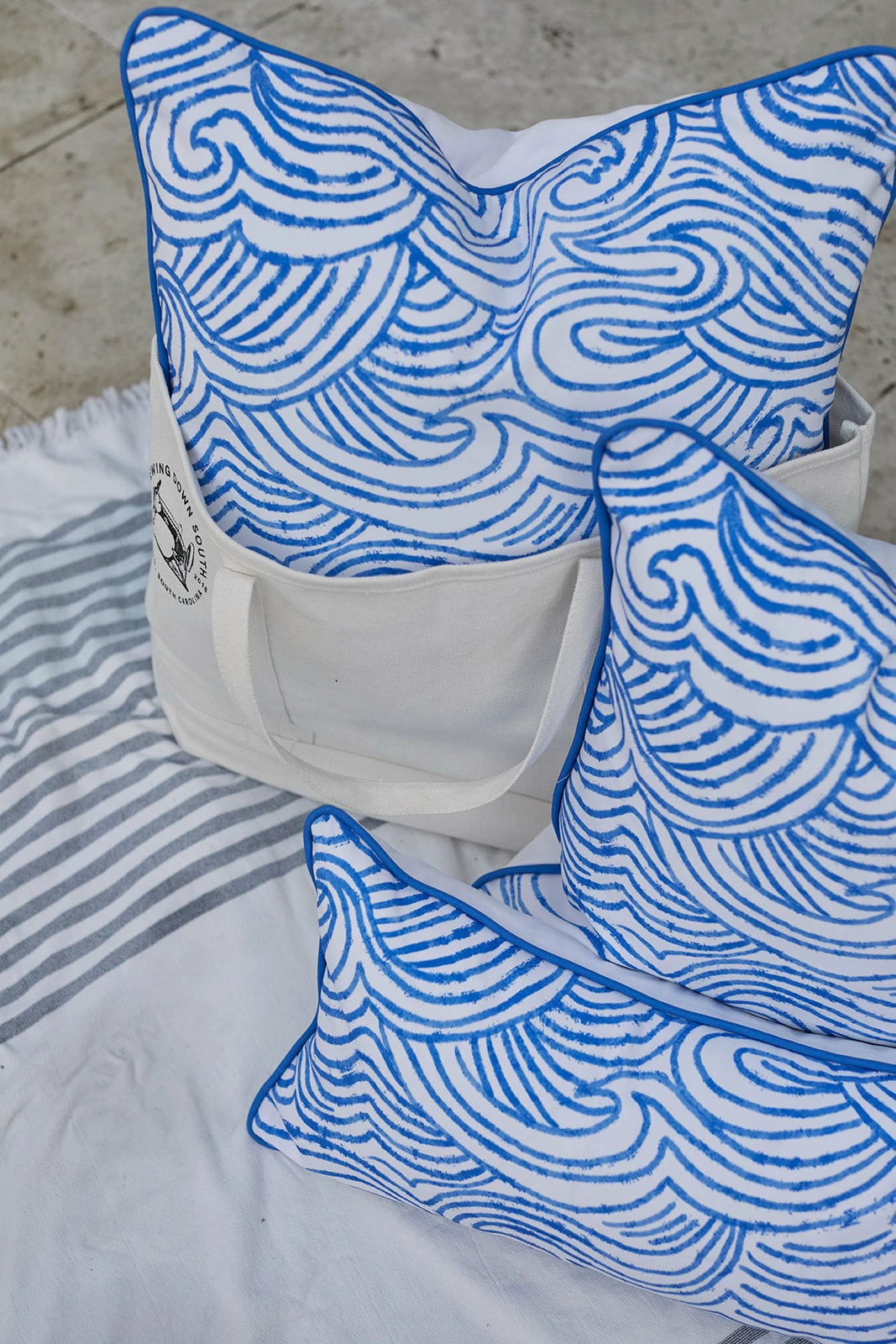 A modern and playful take on waves, this pillow cover creates an impact in rich blues. Created with SDS Shield® Outdoor Fabric that is designed for performance, we finished it with a complimentary welt.