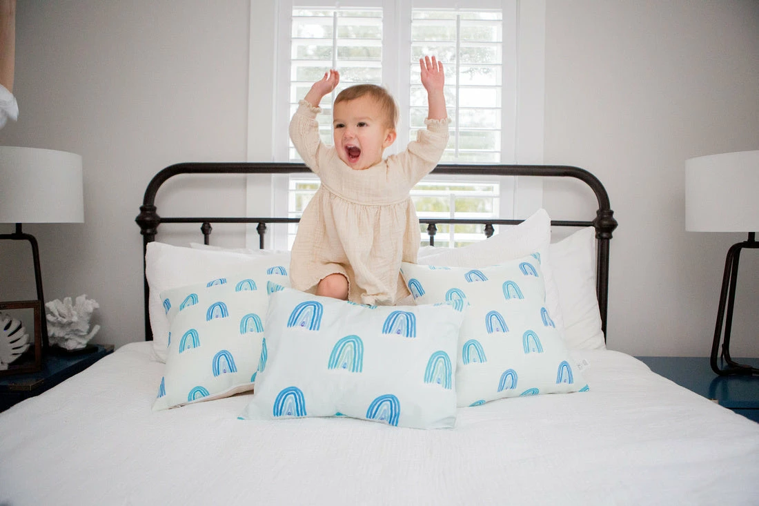 Our Rainbows in Blue Pillow includes almost every blue hue you can dream of too.