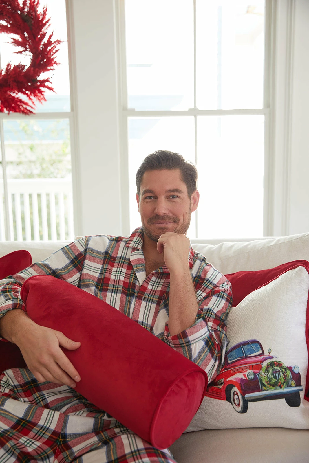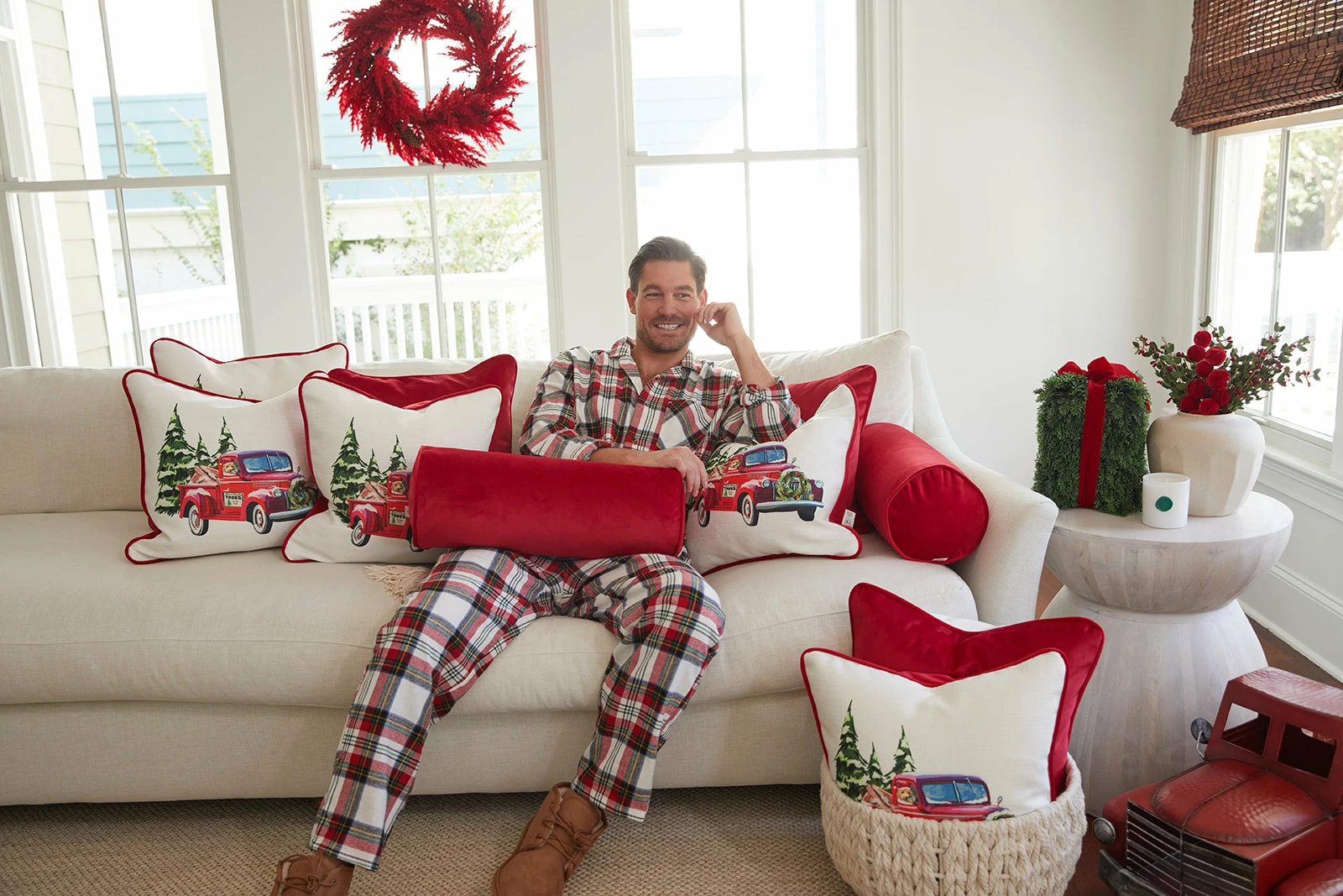 It’s the perfect holiday compliment or anchor pillow for the season. And hint hint – it matches perfectly with our Holiday Farm Tree Truck Pillow with new scarlet velvet back and welting.