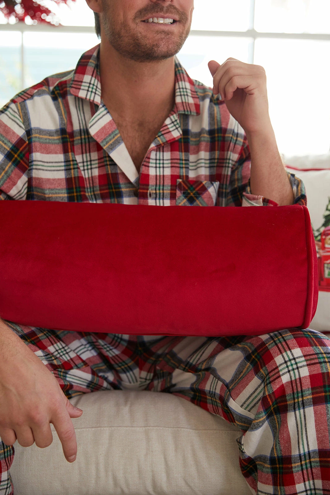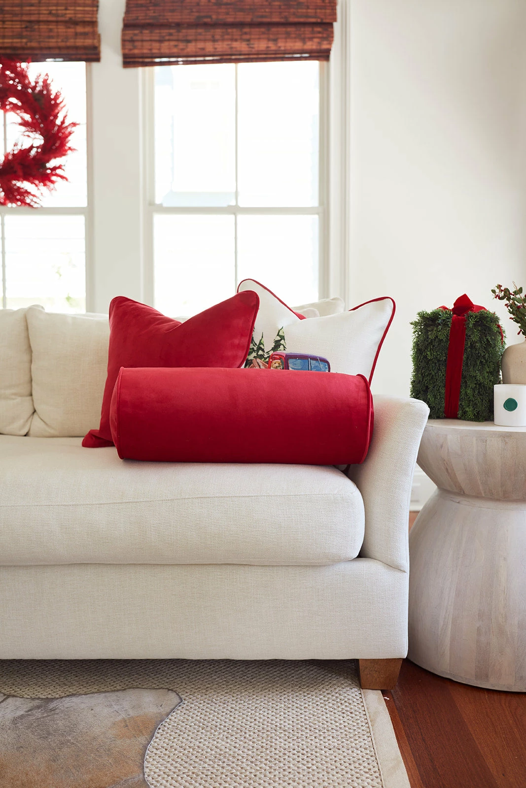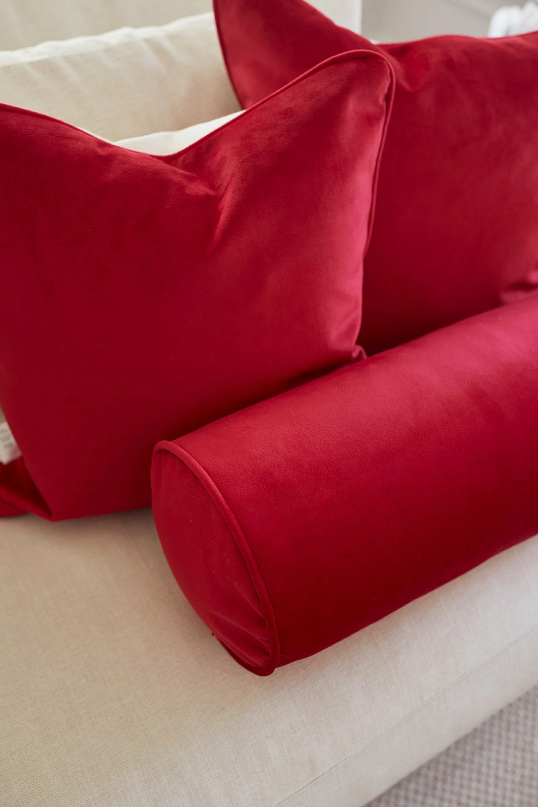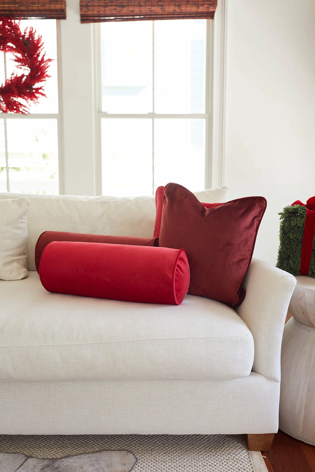 THE VELVET COLLECTION: Meet our all new 8 X 20 Velvet Bolster Pillow in scarlet!