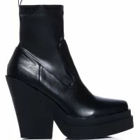 **SLIM FIT** AZALEA WANG LOVE IS IN THE AIR SEXY STILETTO PANT BOOT WITH 4 WAY STRETCH IN BLACK PU