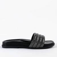 AZALEA WANG NIKOLINA EMBELLISHED SLIP ON SANDAL IN BLACK